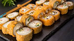 Por dentro: Pepino, aguacate y surimi. Por fuera: philadelphia y ajonjolí.