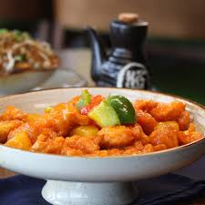 Camarón crujiente con queso Philadelphia y salsa agridulce.