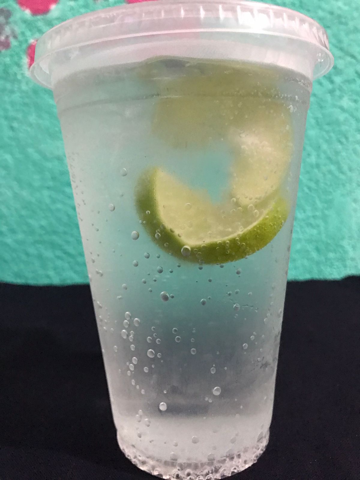 45ml de vodka, un toque de jugo de limón, 1 rodaja de limón, hielos, agua mineral, servido en vaso de 500ml