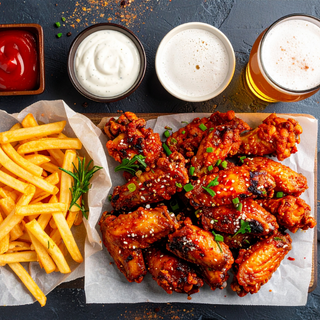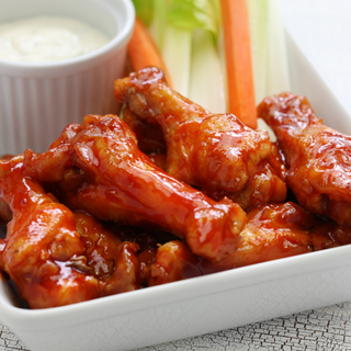 8 pzs de alitas en la salsa deseada, acompañadas de bastones de zanahoria y apio