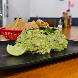 Guacamole fresco preparado con aguacate, jitomate, cebolla, cilantro y limón.