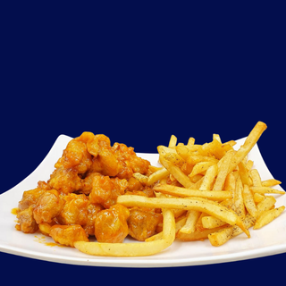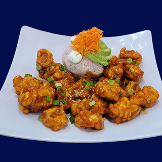 Trozos de proteina capeado y fritos, bañados en salsa dulce o salsa picante, según tu elección. Acompañado de gohan especial.