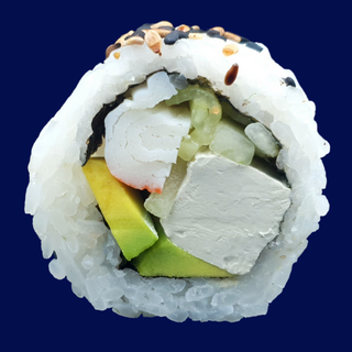 Rollo relleno de queso crema, aguacate y cangrejo (surimi)