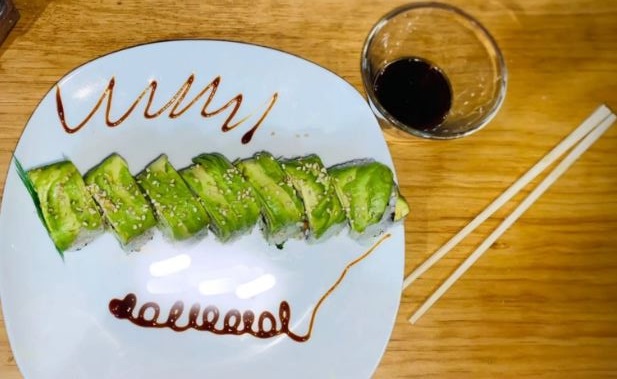Zanahoria,pepino,surimi, queso crema, aguacate y nuestro aderezo Tampico