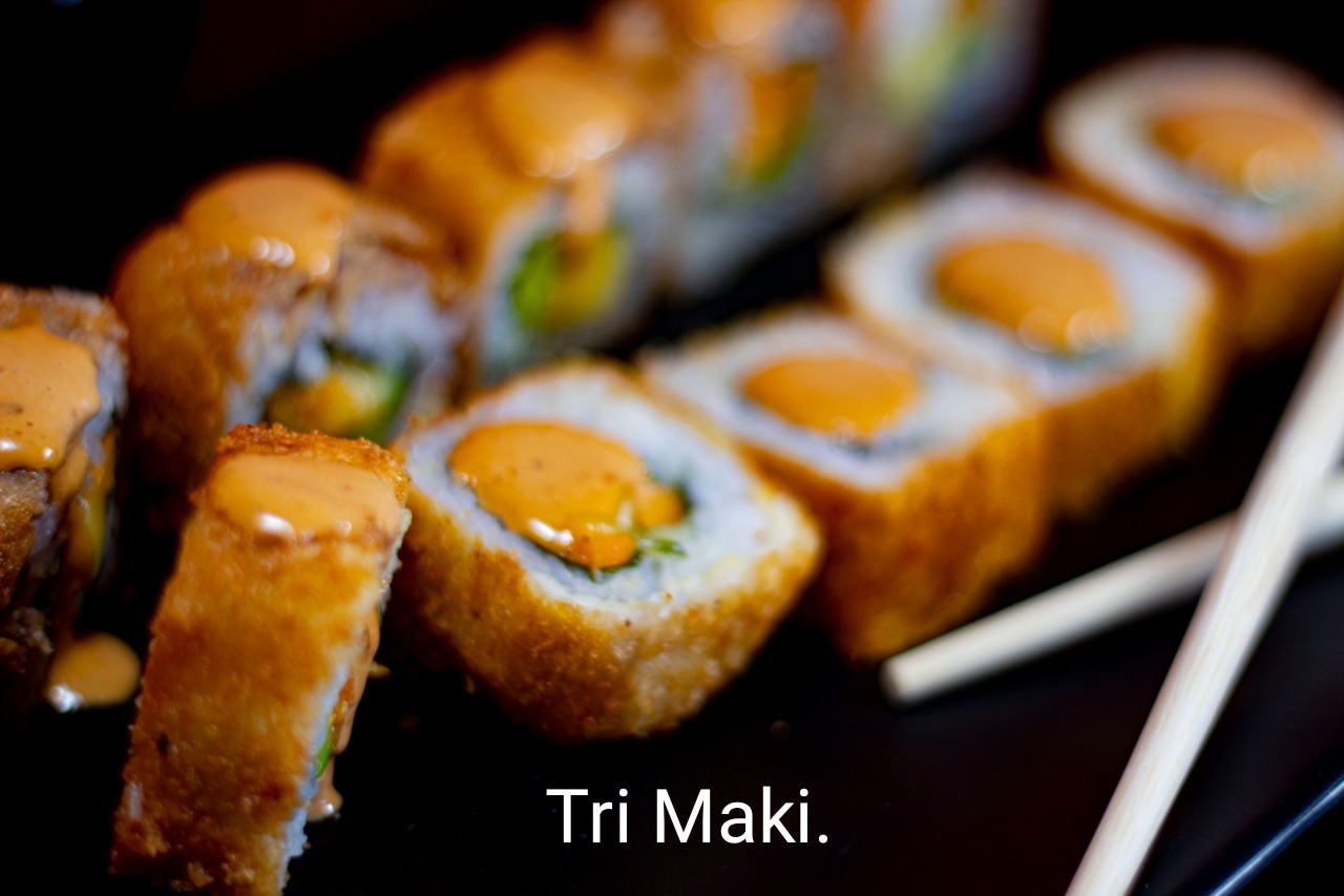 1 Pieza de camarón, 1 pieza de salmón con queso y 1 pieza de surimi con queso.