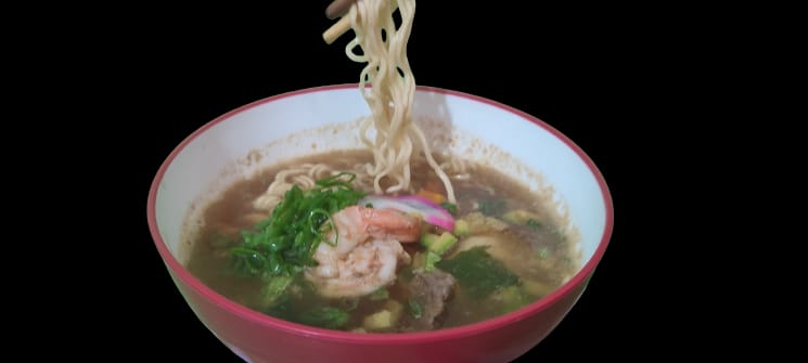 Fideo oriental, verdura, alga, cebollín y un ingrediente de tu elección.
