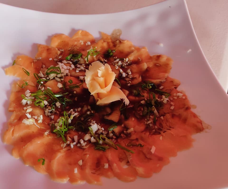 Salmon fresco, mango, queso crema, surimi capeado, cebollín y nuestro aderezo oriental.