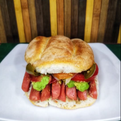 telera norma, salchicha, lechuga, jitomate, cebolla, mayonesa, chiles