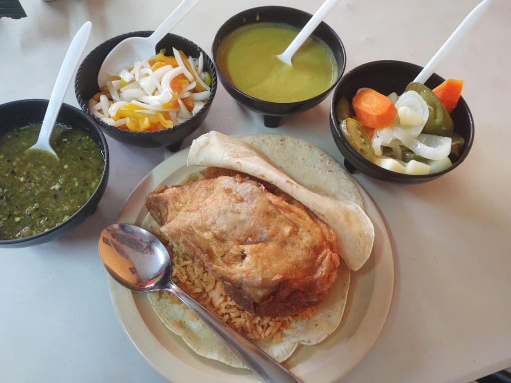 Dos tortillas una manita de cerdo capeada.
