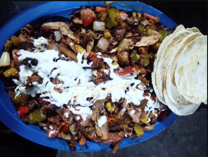 Carne al carbon estilo iguala gratinada con queso
