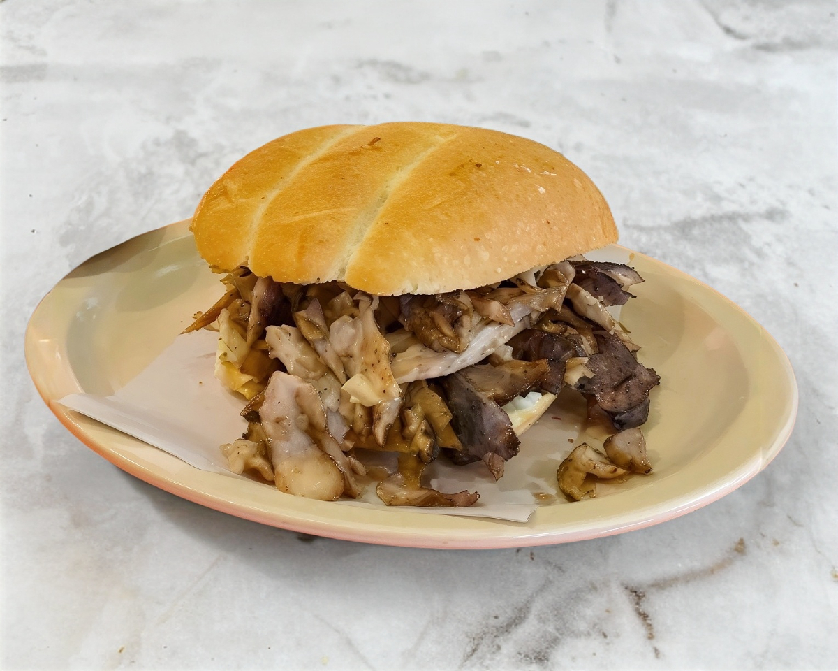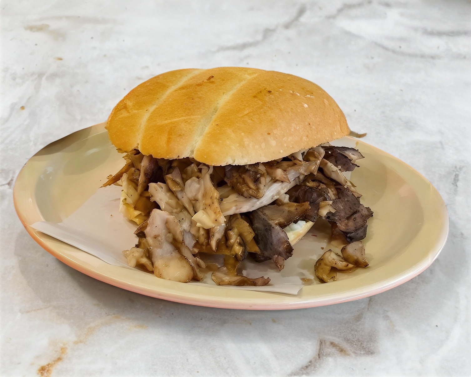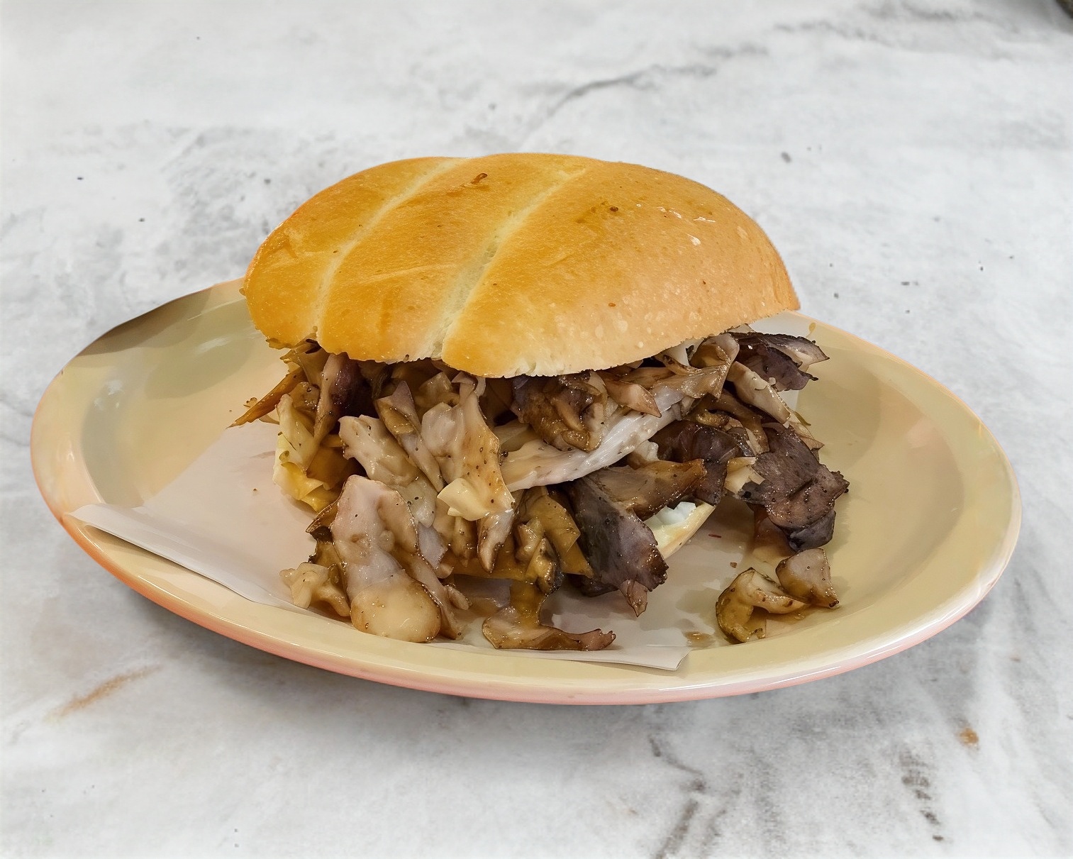 1 torta arabe - Carne estilo árabe, cocción al carbón en trompo, servido en telera artesanal. Se envía con limones, salsa chipotle y cebollas en rajas con habanero.