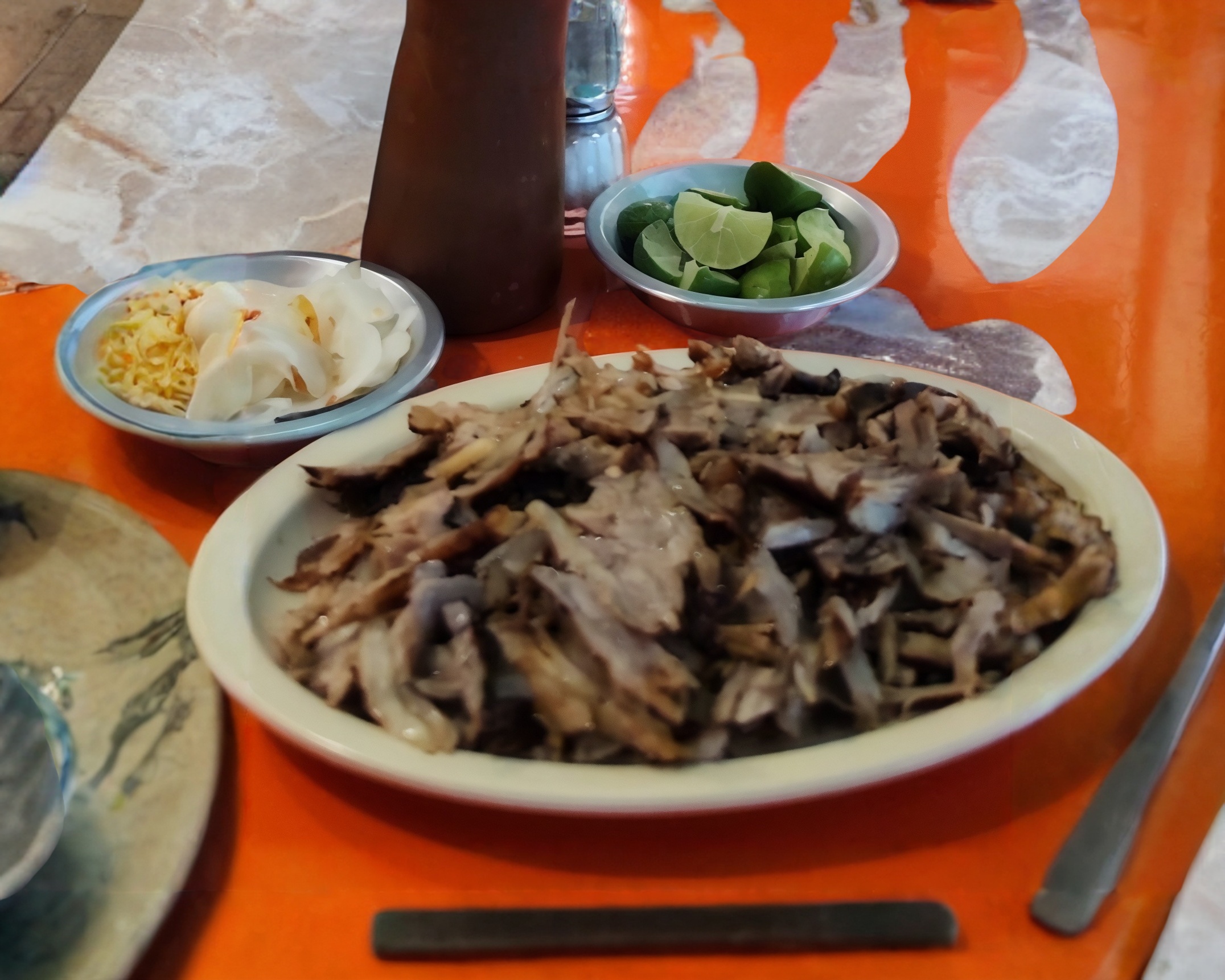 1 kg De carne estilo árabe, cocción al carbón en trompo, 12 tortillas árabes, 10 tortillas de maíz. Se envía con limones, salsa chipotle y cebollas en rajas con habanero.