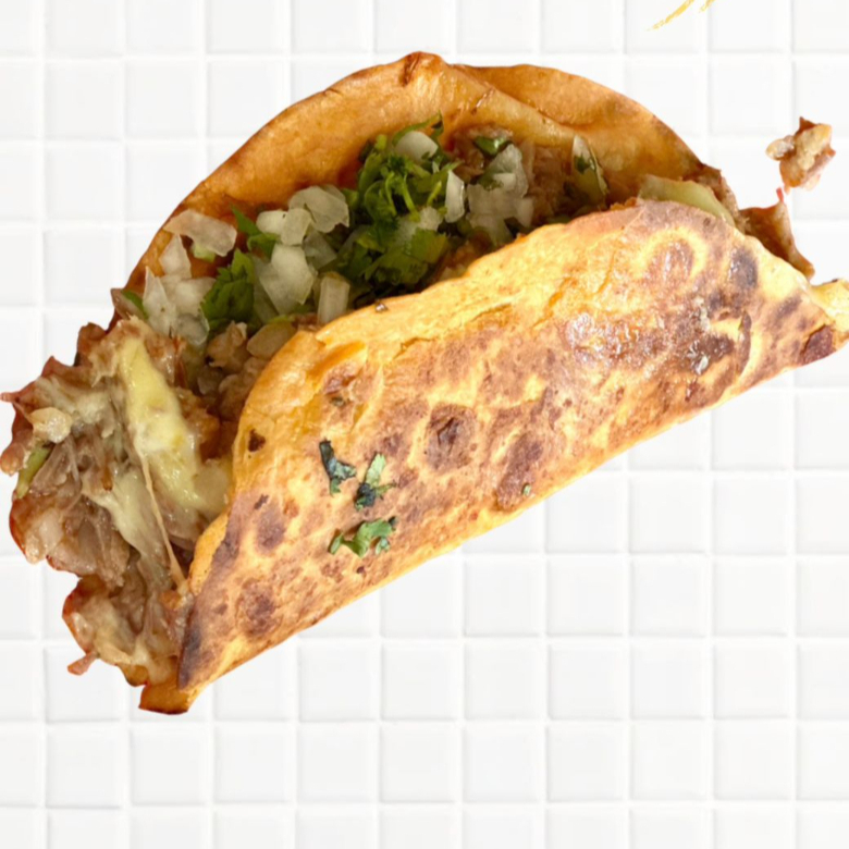 Quesadilla grande rellena de abundante queso fundido y rica carne asada.