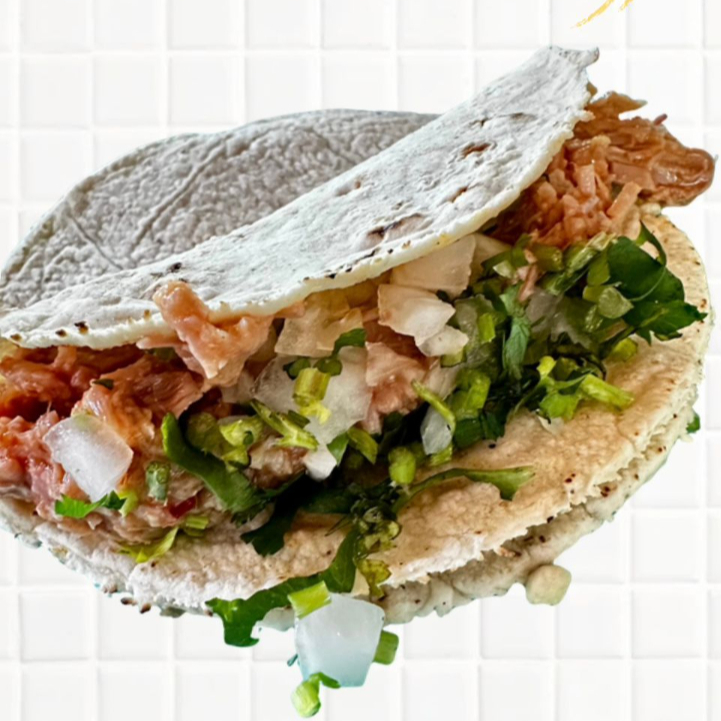 Delicioso taco tradicional servido en tortilla de maíz caliente con cebolla y cilantro fresco.