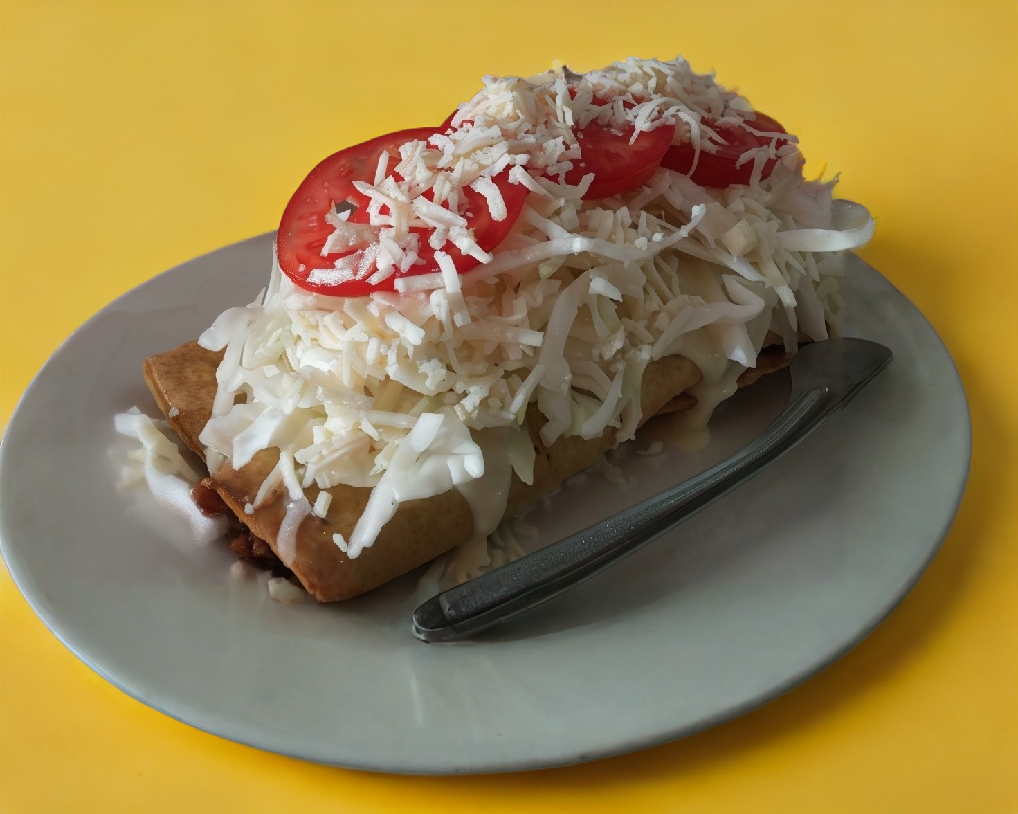 1 Taco dorado de requeson con col, jitomate, queso en polvo y crema. (En la imagen ilustrativa se muestran 2 tacos dorados)