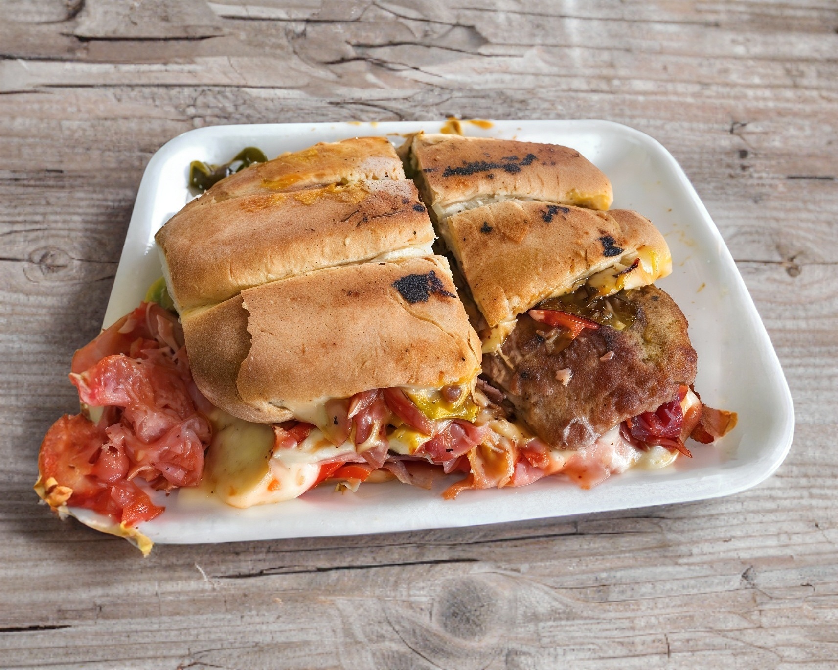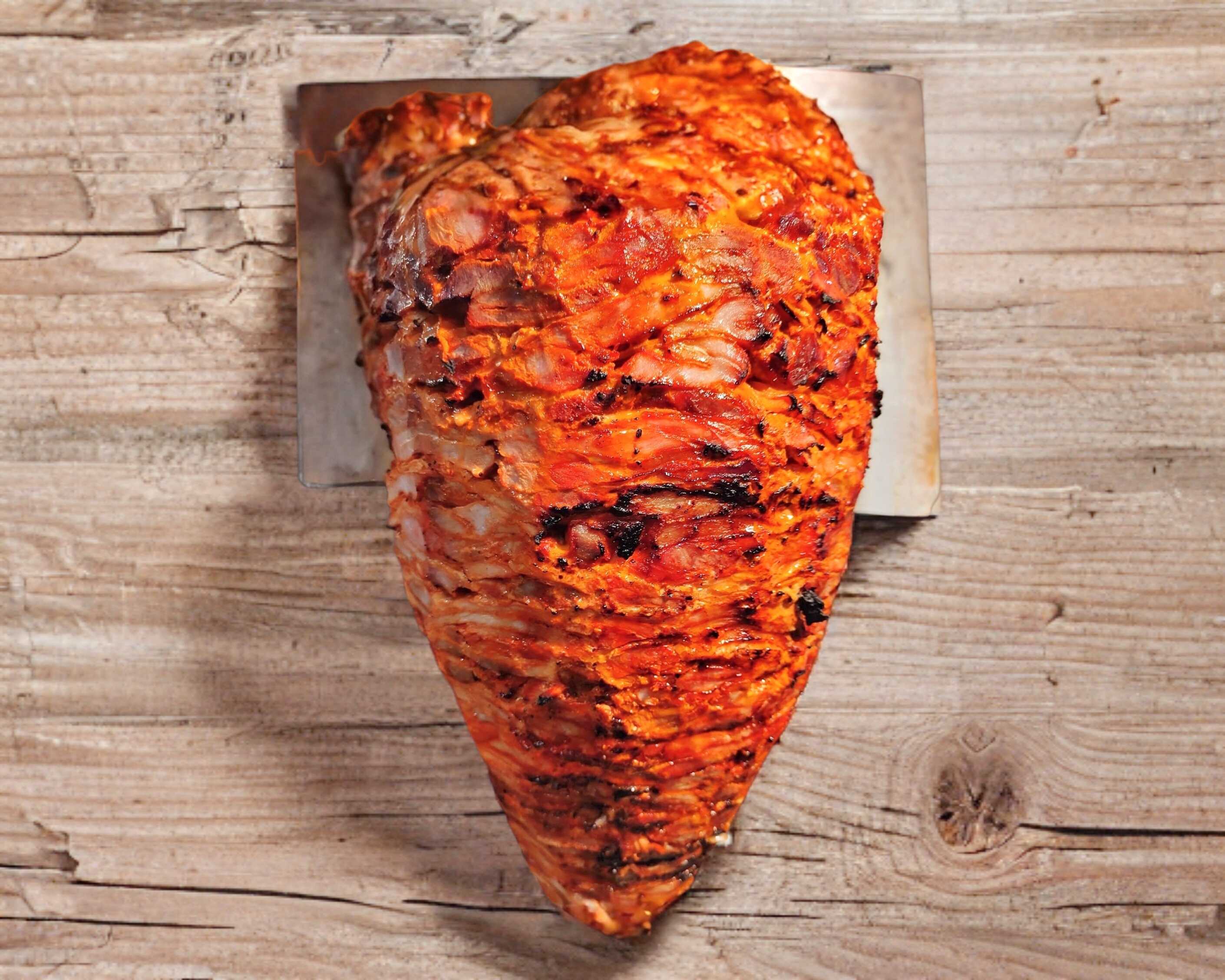 Pastor, suadero, bistec, chuleta, tocino, jamón, morrón, cebolla, queso Oaxaca