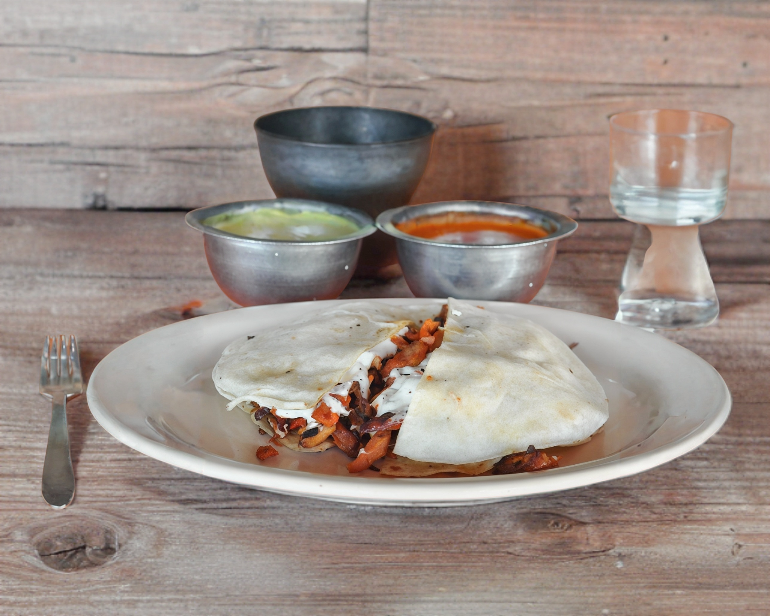 Queso, chorizo, jalapeño, cebolla, 4 tortillas de harina.