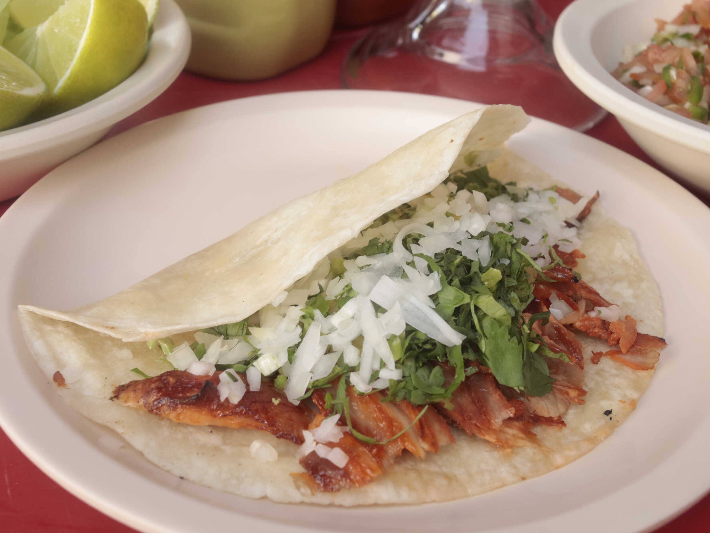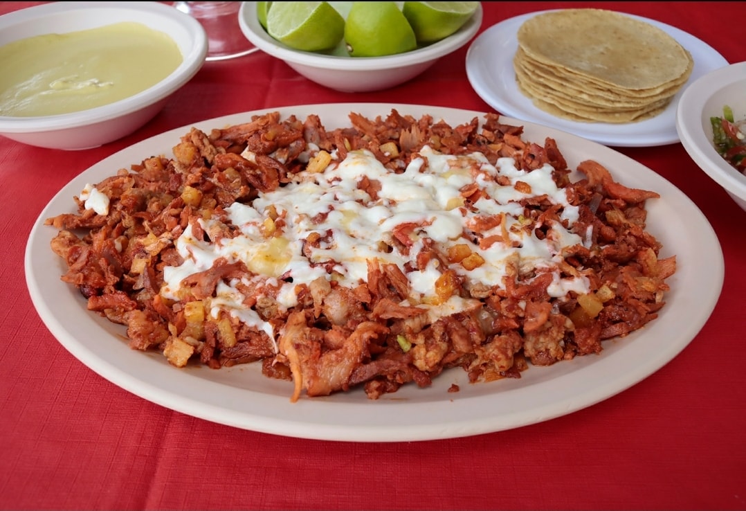 Jugosa carne de pastor acompañada de cebolla cilantro y piña