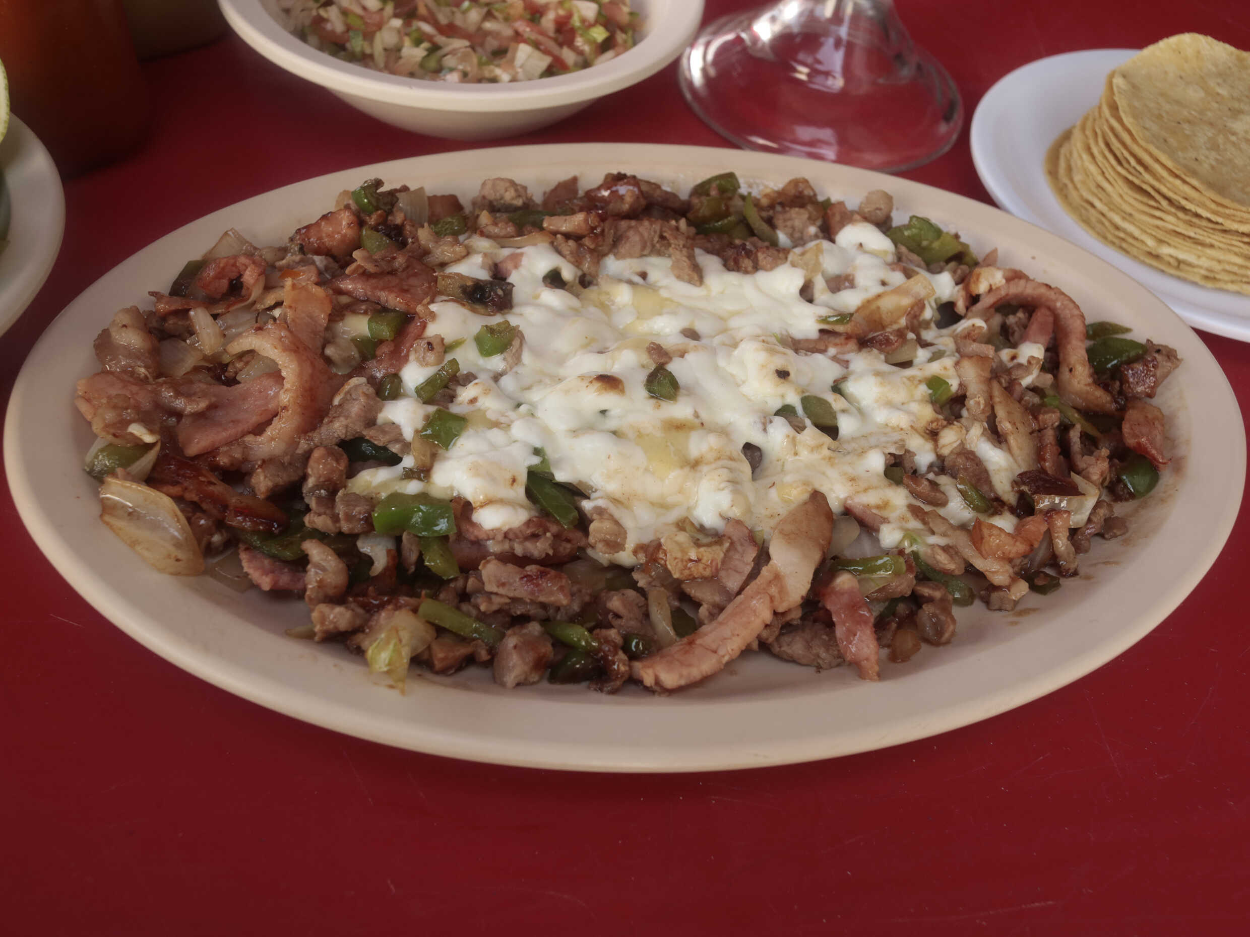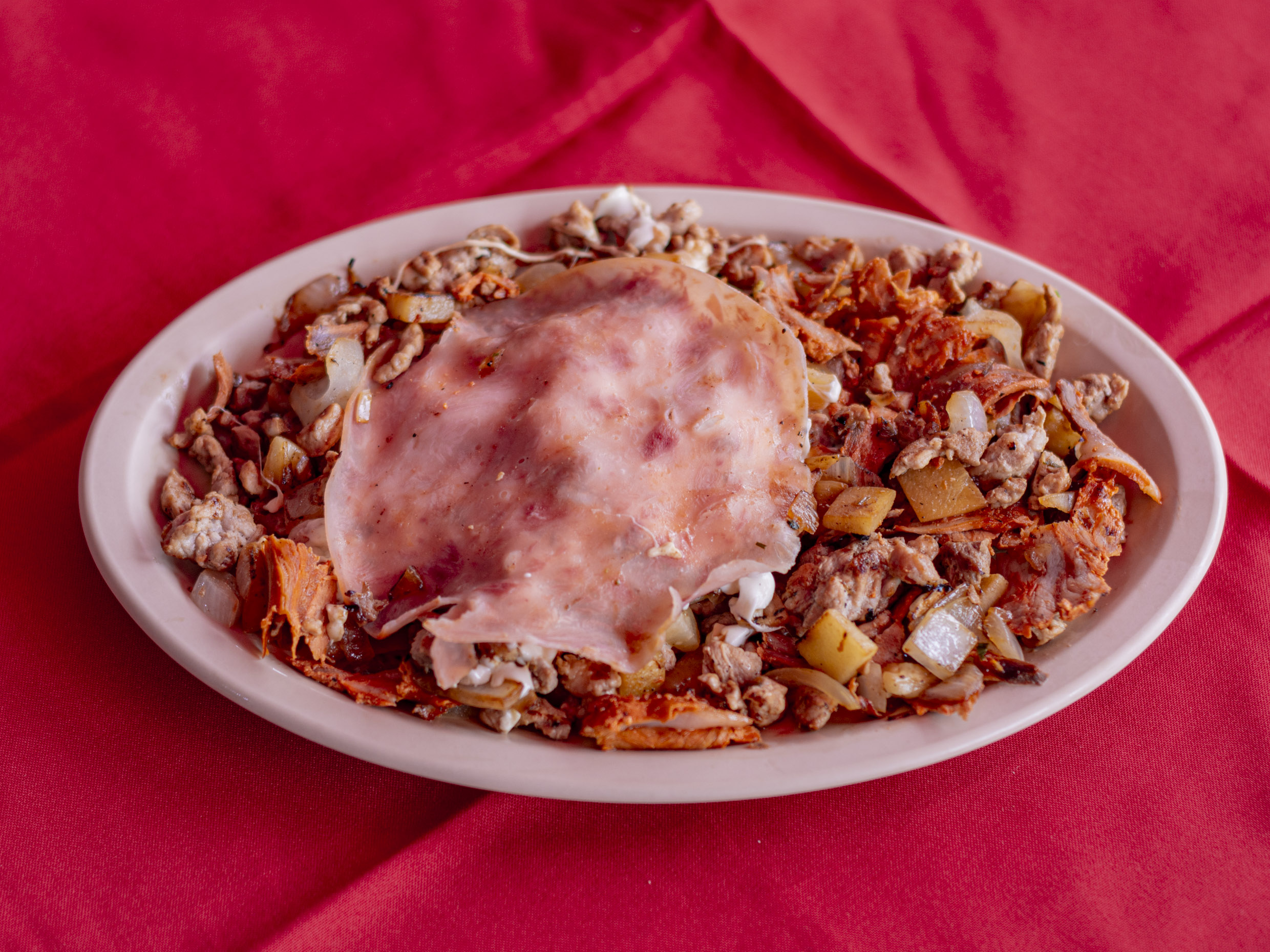 Bistec, chorizo, pastor, jamón y queso.