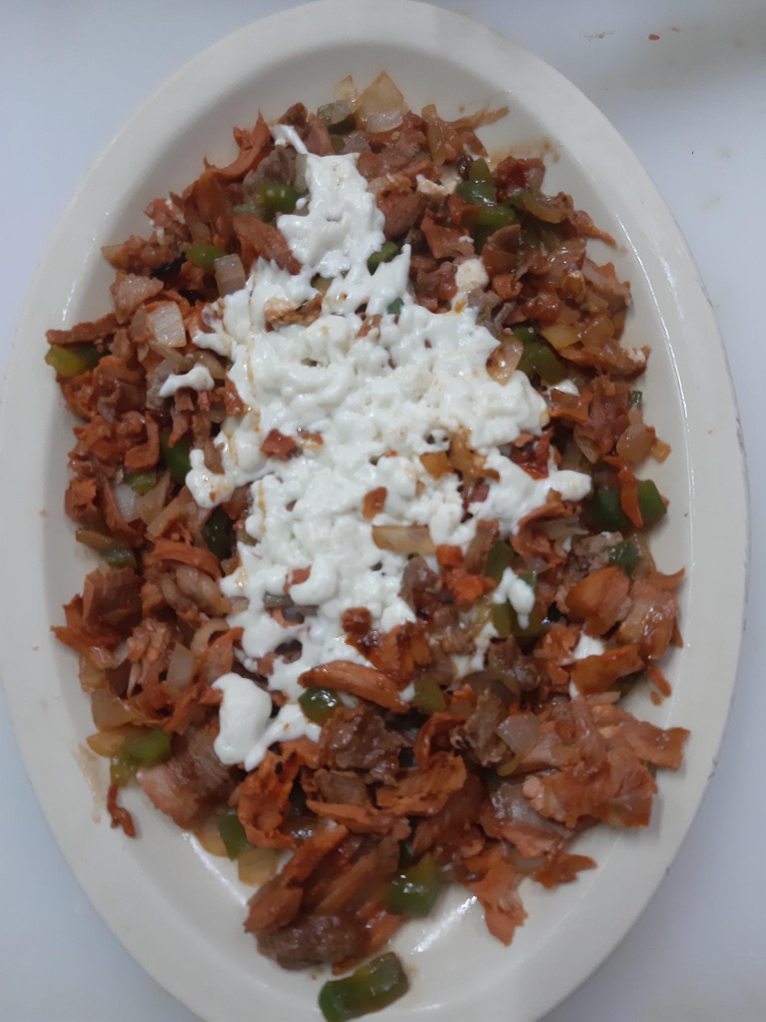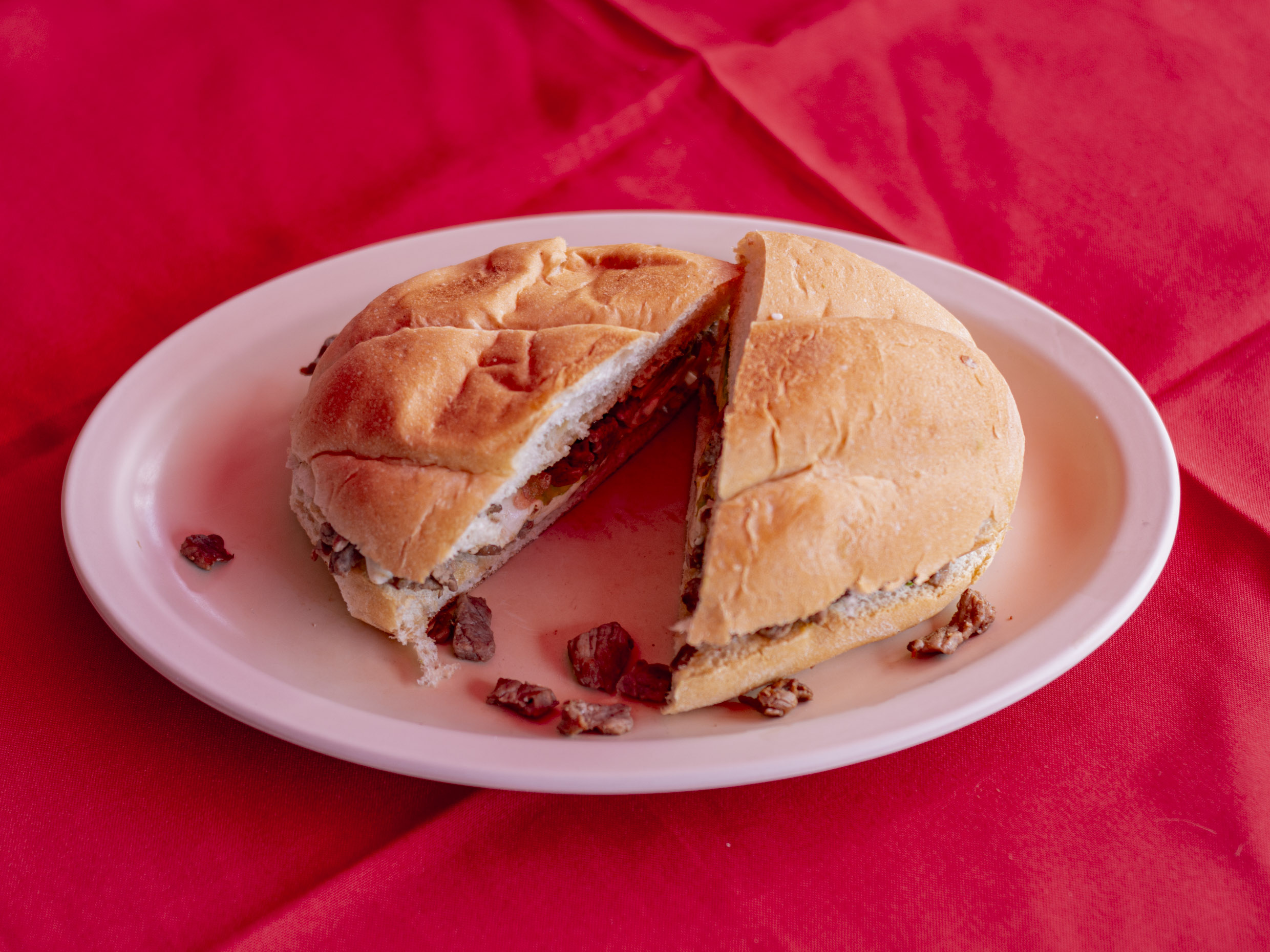 Bistec, cebolla, morrón, jitomate y queso.