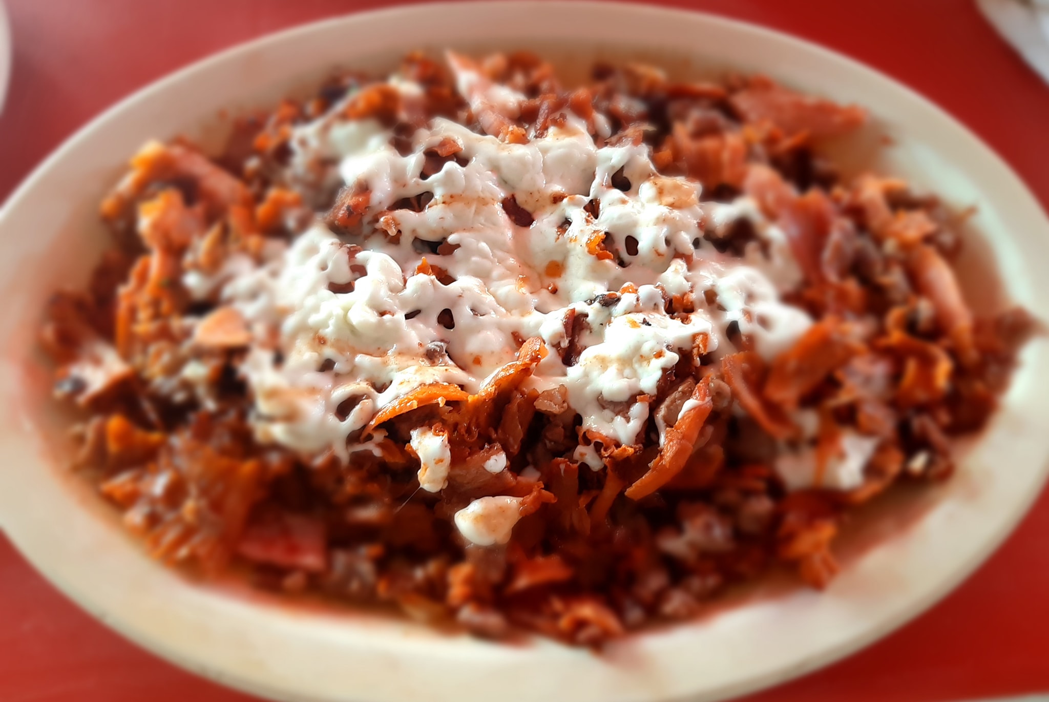 Carne árabe, queso, lechuga, jitomate, cebolla, aguacate y frijol.