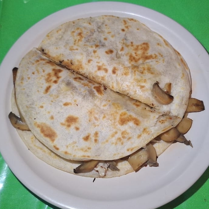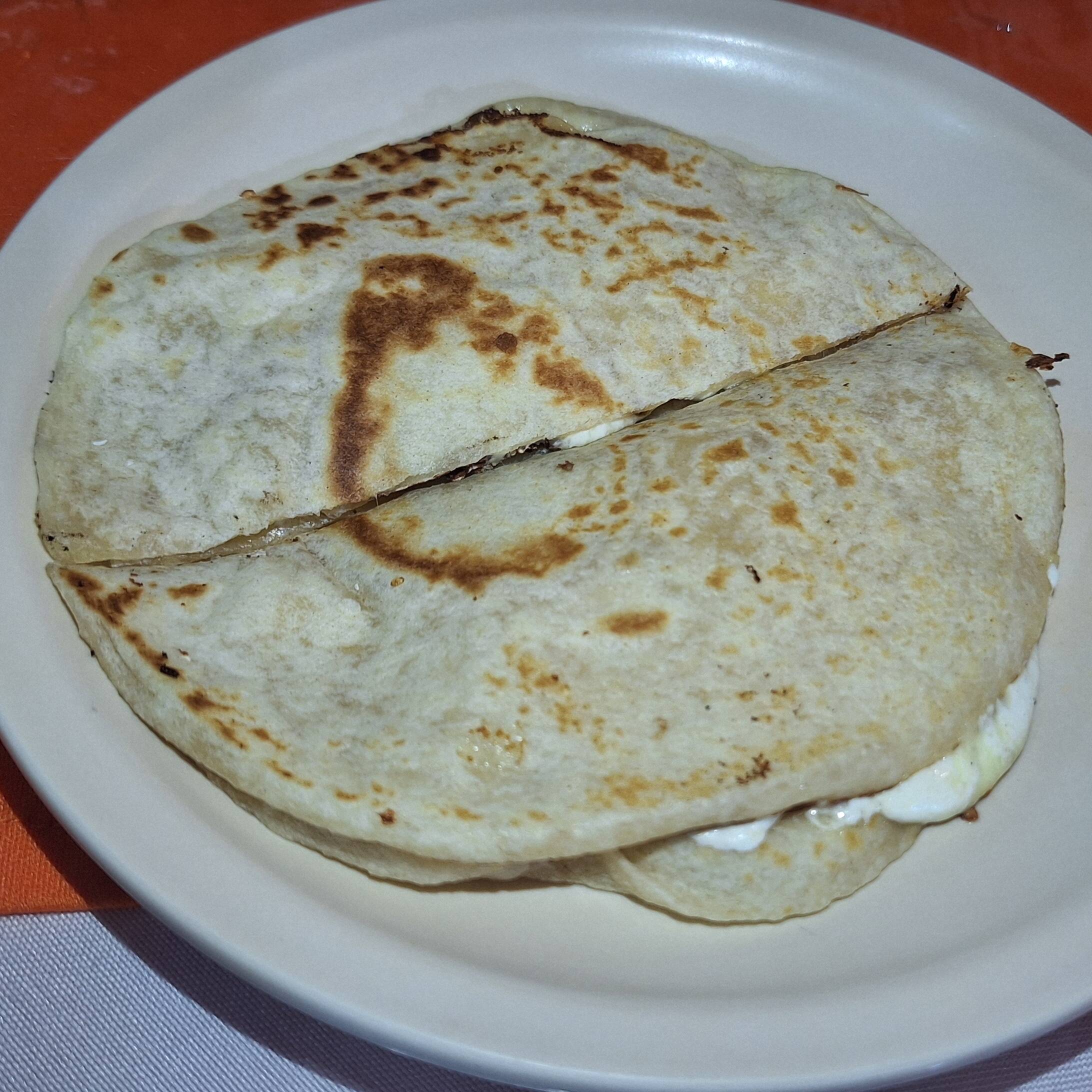 Queso derretido en tortilla de harina, ideal como acompañamiento o snack.