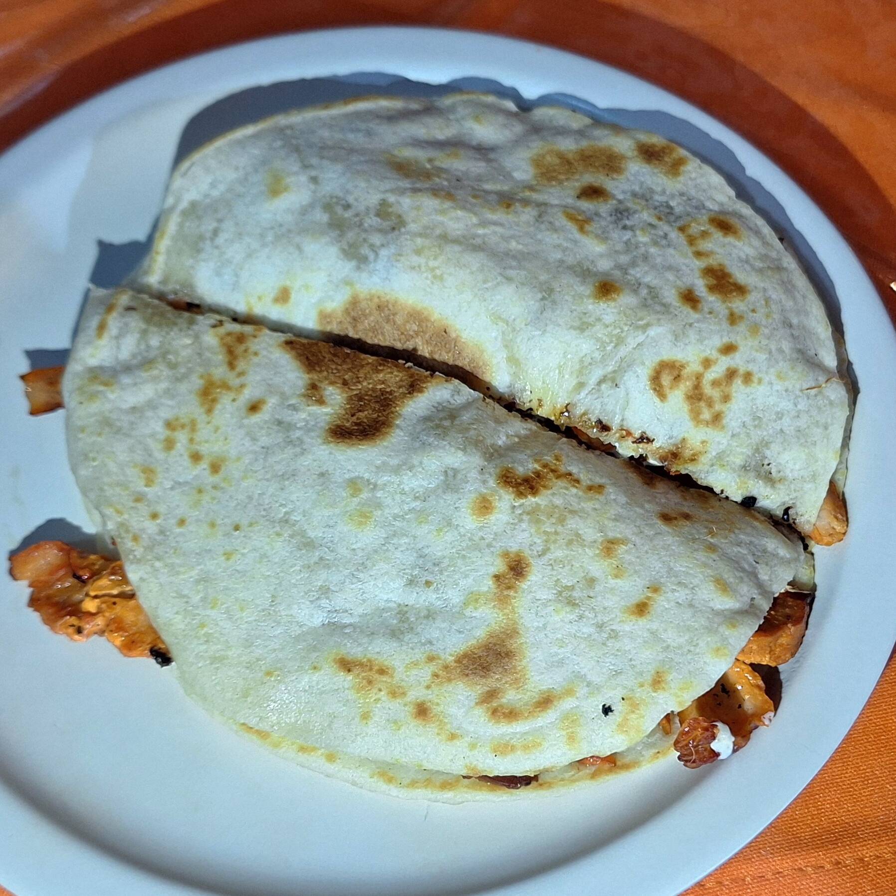 Chuleta, jamón, piña y queso en tortilla de harina, estilo tropical.