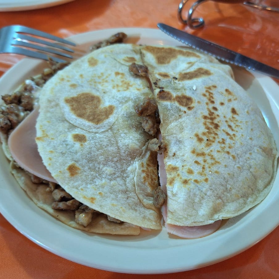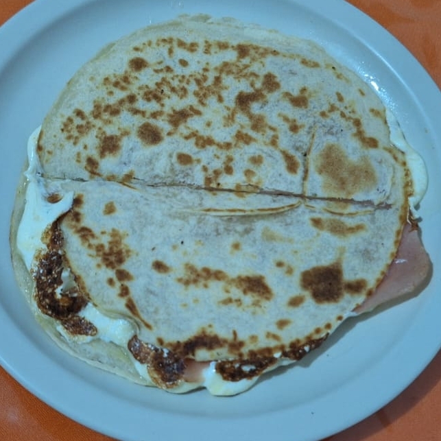 Tortilla de harina rellena de jamón y queso, estilo clásico mexicano.