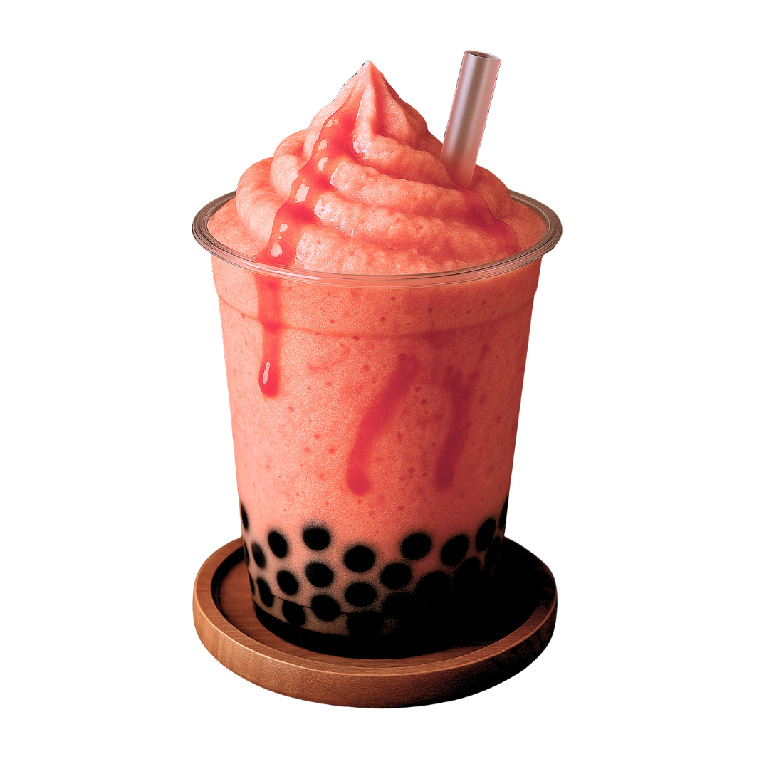 Sabor fresa tipo frappé con tapioca y/o perlas explosivas. Vaso 16 Oz.