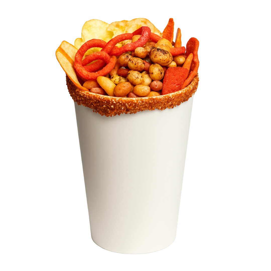 Papas enchiladas, incluye 2 ingredientes, escoge hasta 6 complementos . Vaso 1 L.