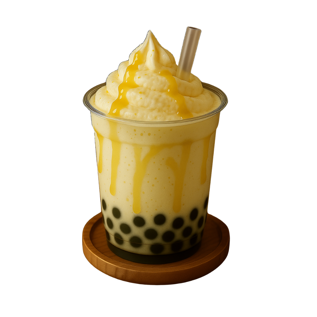 Sabor mango tipo frappé con tapioca y/o perlas explosivas. Vaso 16 Oz.