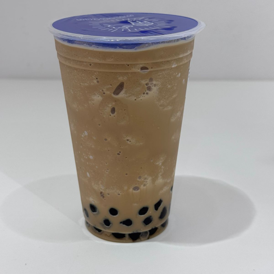 Frappe doblemente delicioso de concentrado de arroz con un toque de chai, leche evaporada y perlas de tapioca negra.