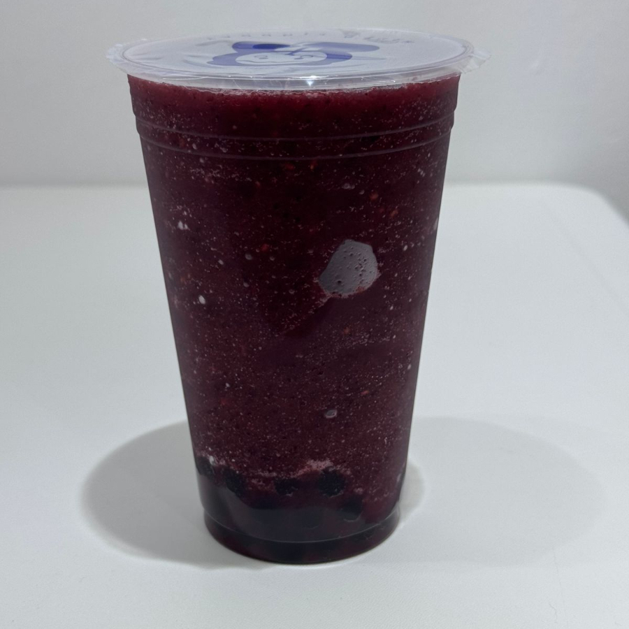 Frappe Mezcla de frutos rojos orgánicos,fresa,zarzamora,frambuesa y arándanos azules, base agua y perlas de tapioca negra