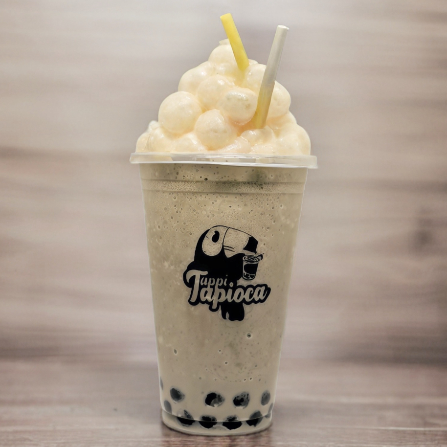 Bebida frappé sabor piña colada, hecha con pulpa natural. Tamaño 16 oz (473 ml).