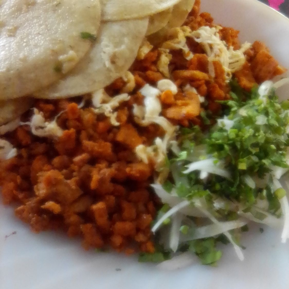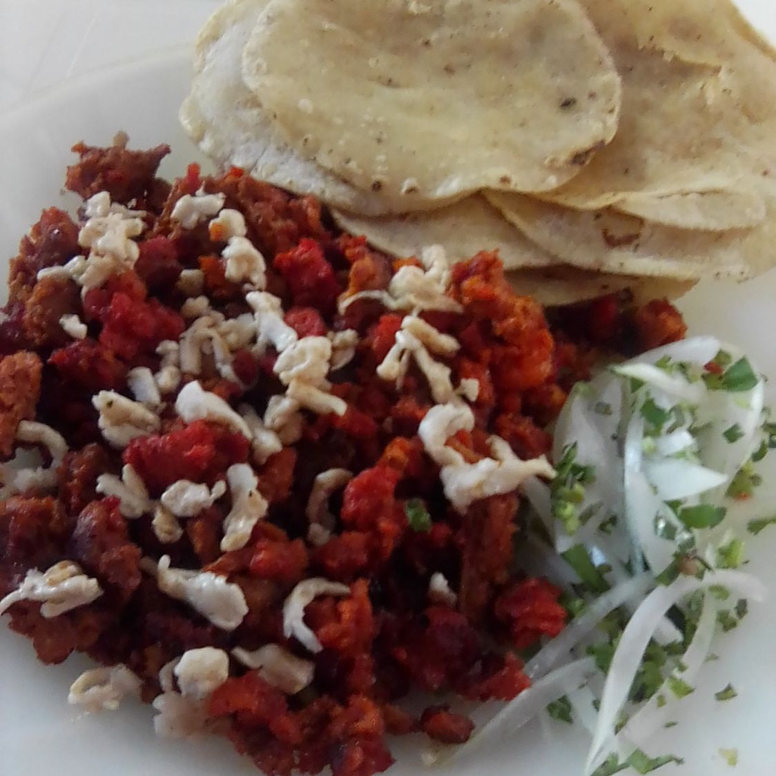 Chorizo con queso acompañado e cebolla cilantro y jitomate