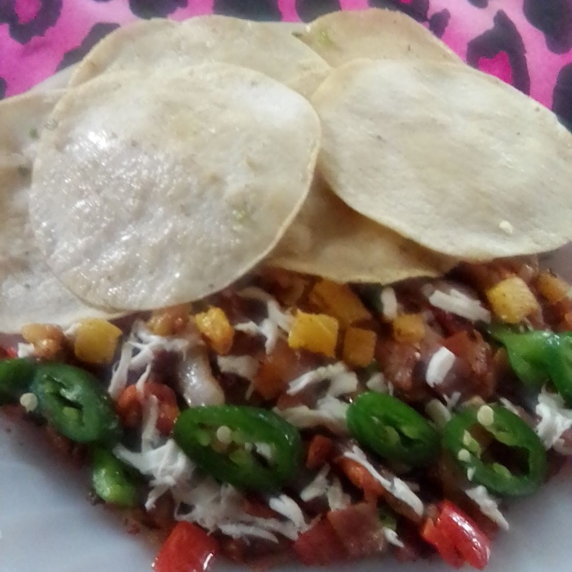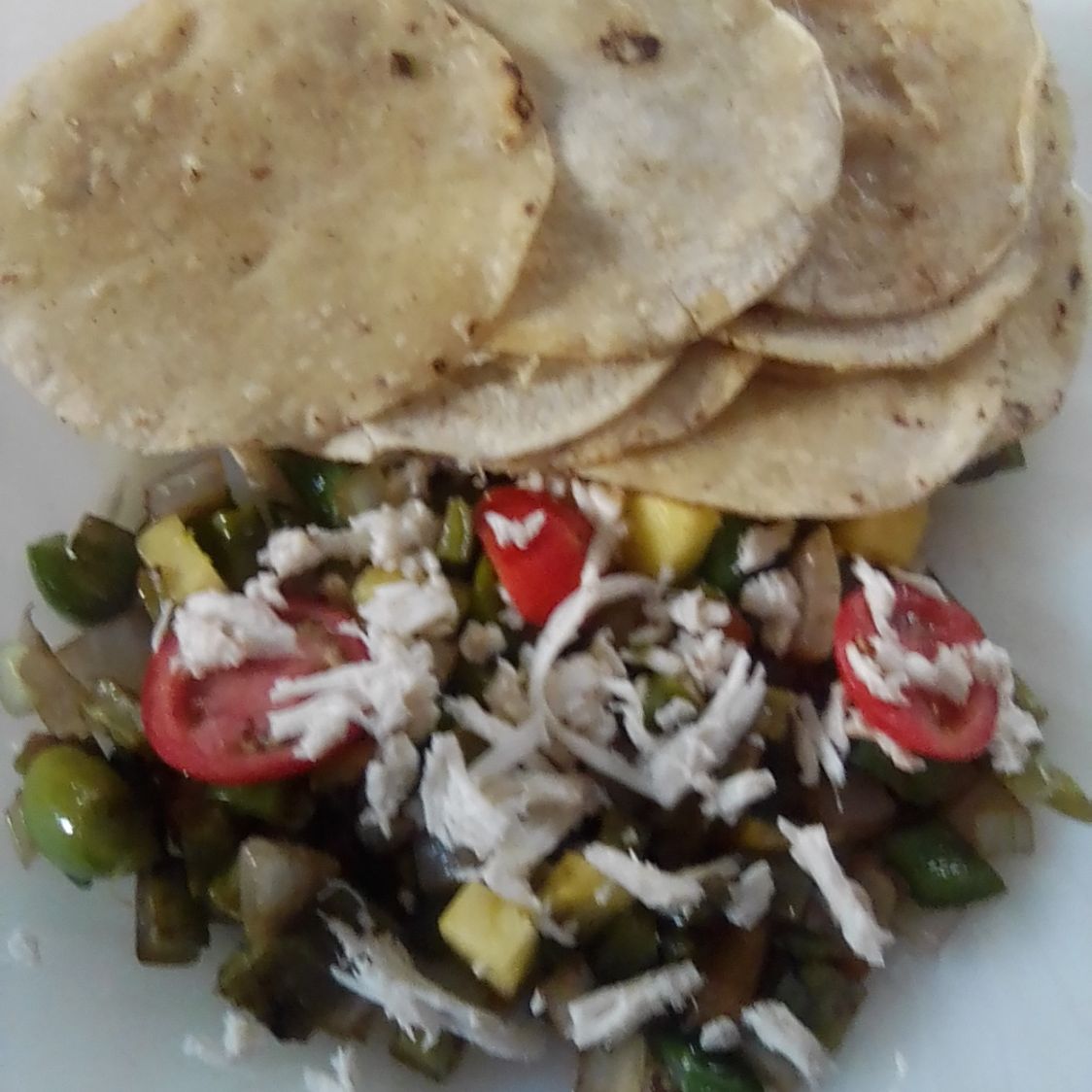 Tortilla de harina nopales piña morrón con queso jitomate cebolla