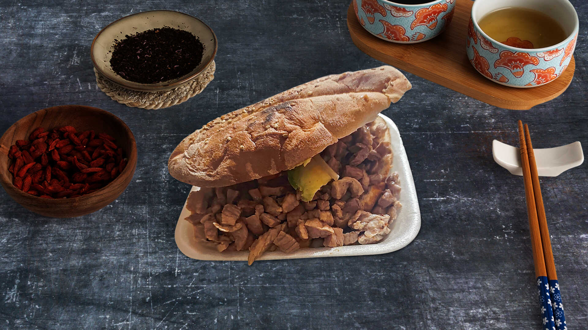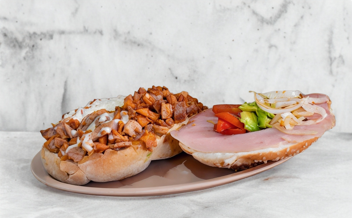 Sal, mantequilla, pastor, bistec, chuleta, costilla, tocino, morrón, cebolla, queso, jamón y aguacate.