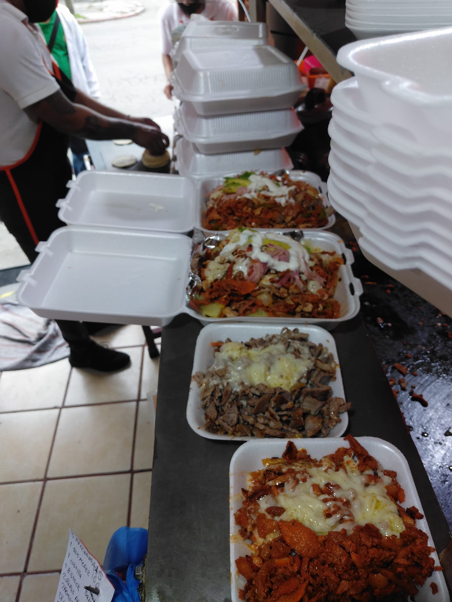 Pastor, bistec, chuleta, costilla, tocino, morrón, cebolla, queso, jamón y aguacate.