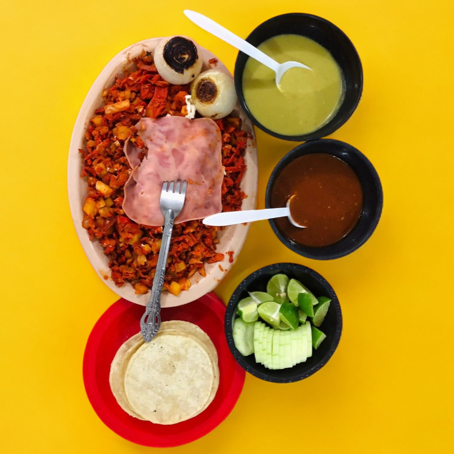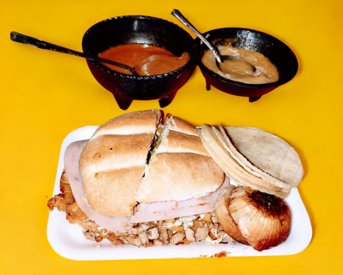 Queso, jamón, pastor, bistec, chuleta, tocino y aguacate.