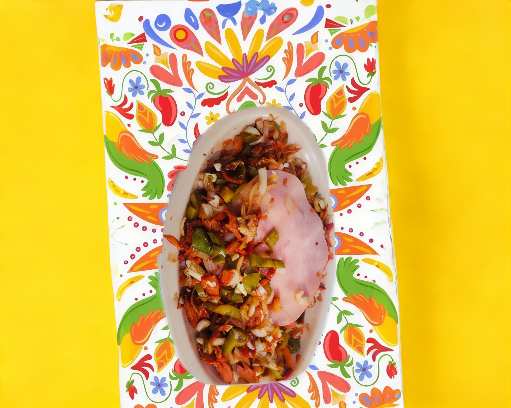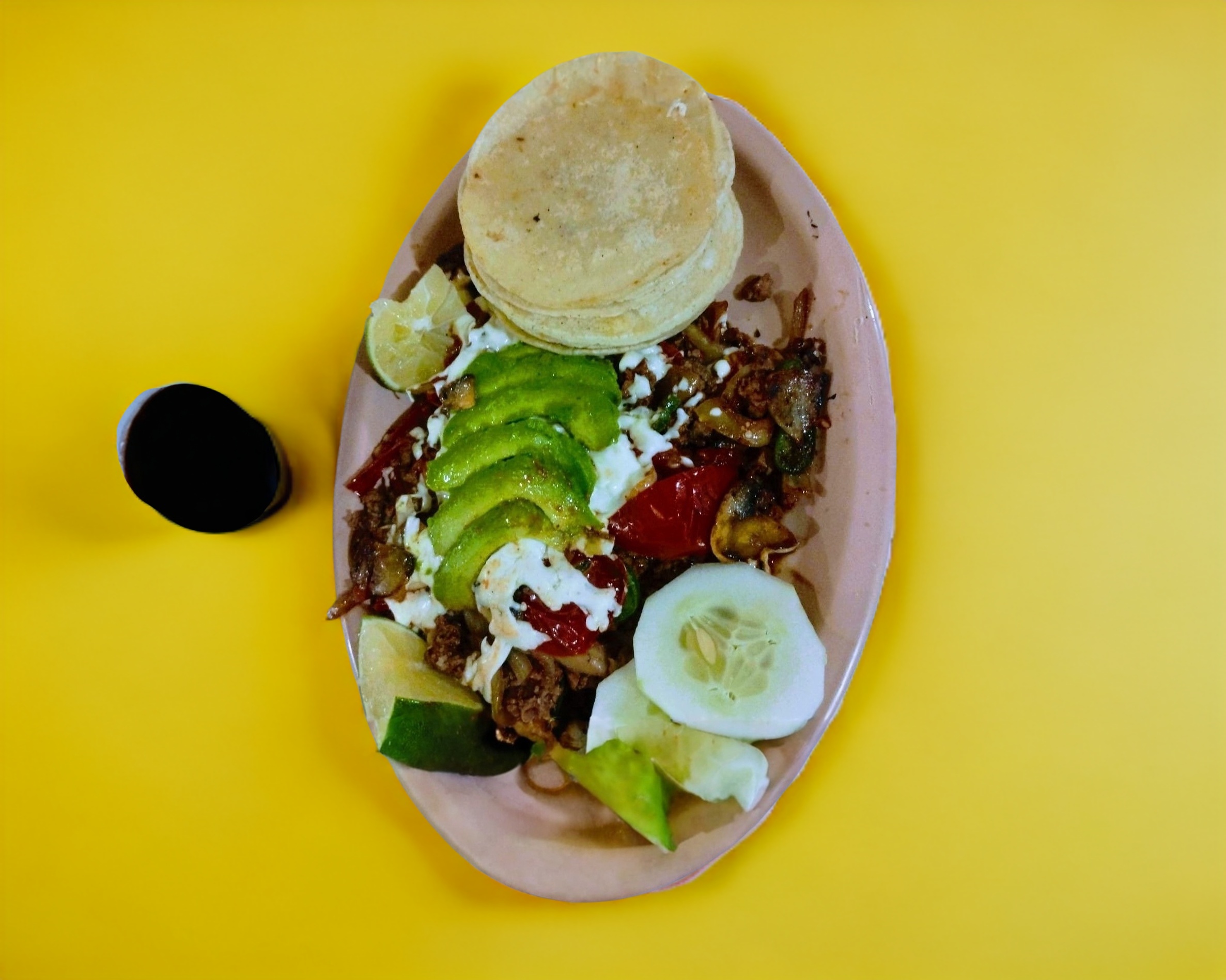 Bistek cebolla champiñón queso aguacate 🥑 jitomate