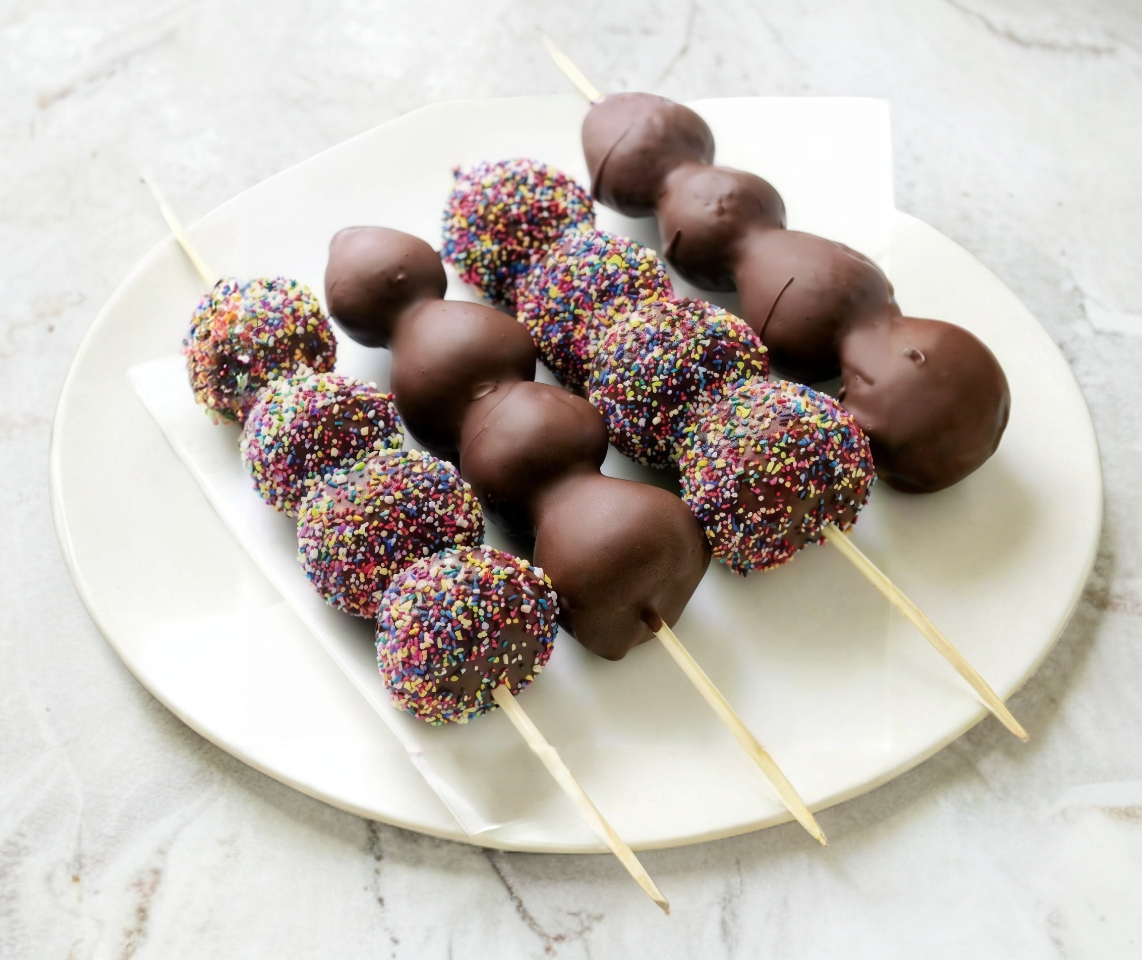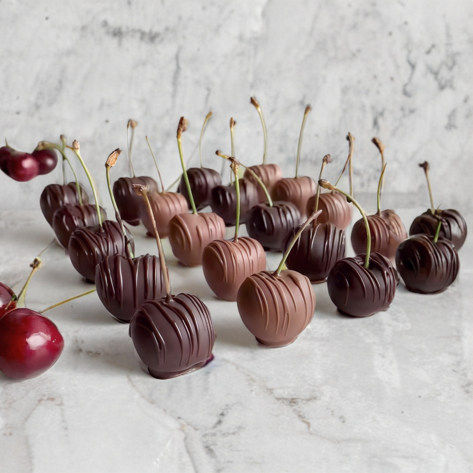 Cerezas en banderilla congeladas cubiertas de chocolate