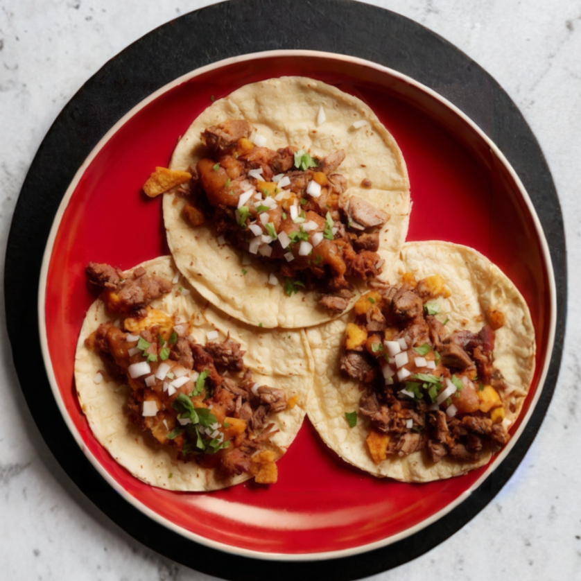 Taco mixto con tres carnes de tu elección. Tortilla mediana