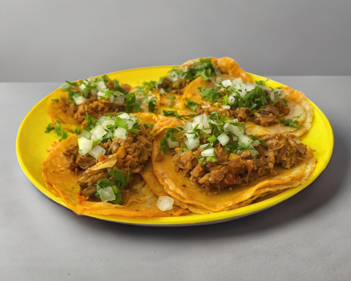Quesadilla de maíz frita con selección de 2 carnes.