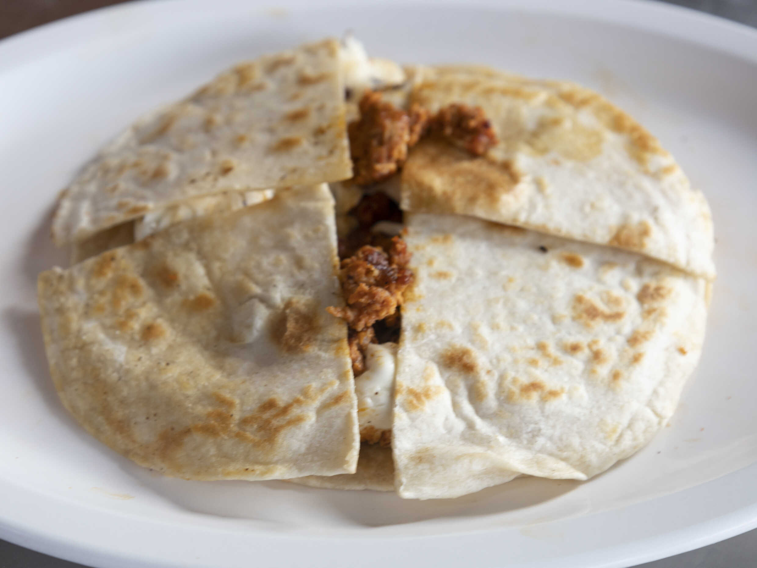 Carne al Pastor, piña, queso con 2 tortillas de harina.