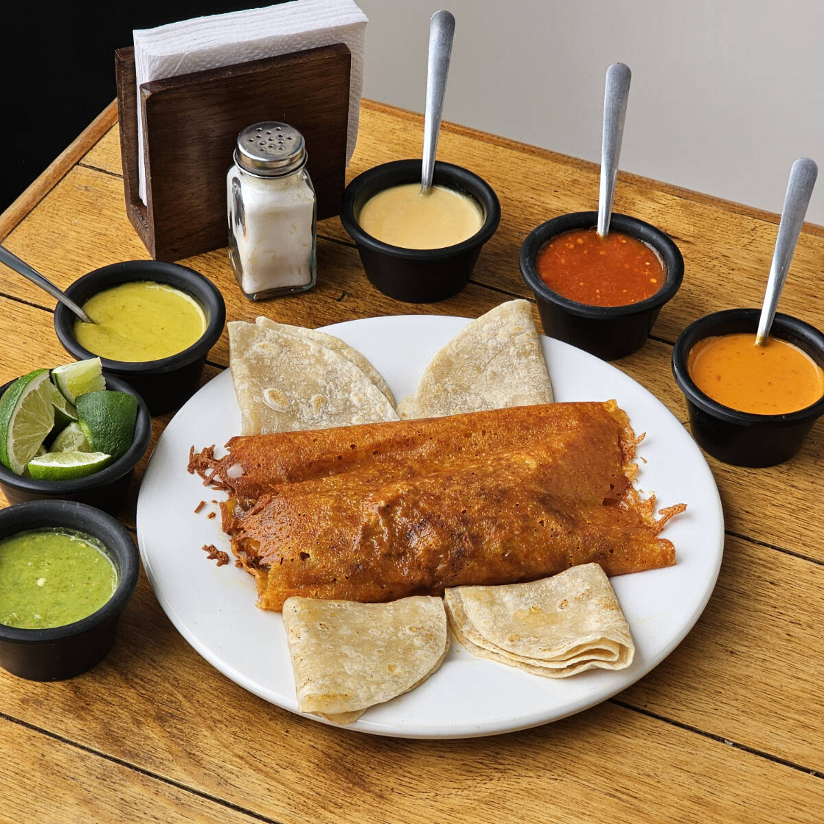 5 tacos de longaniza doradita y llena de sabor. ¡El antojo que no puedes dejar pasar!