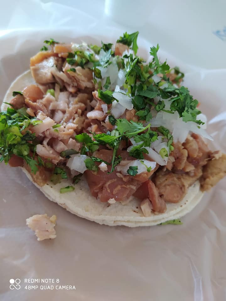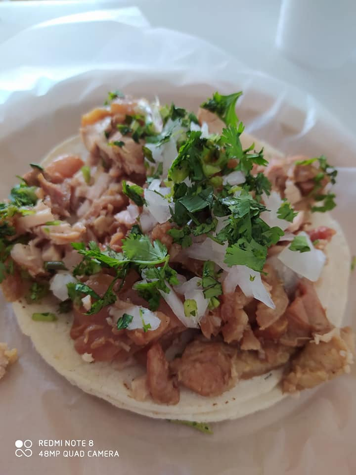 Tres tacos de carnitas con doble tortilla surtido o maciza y 1 jarrito de 600 mililitros.