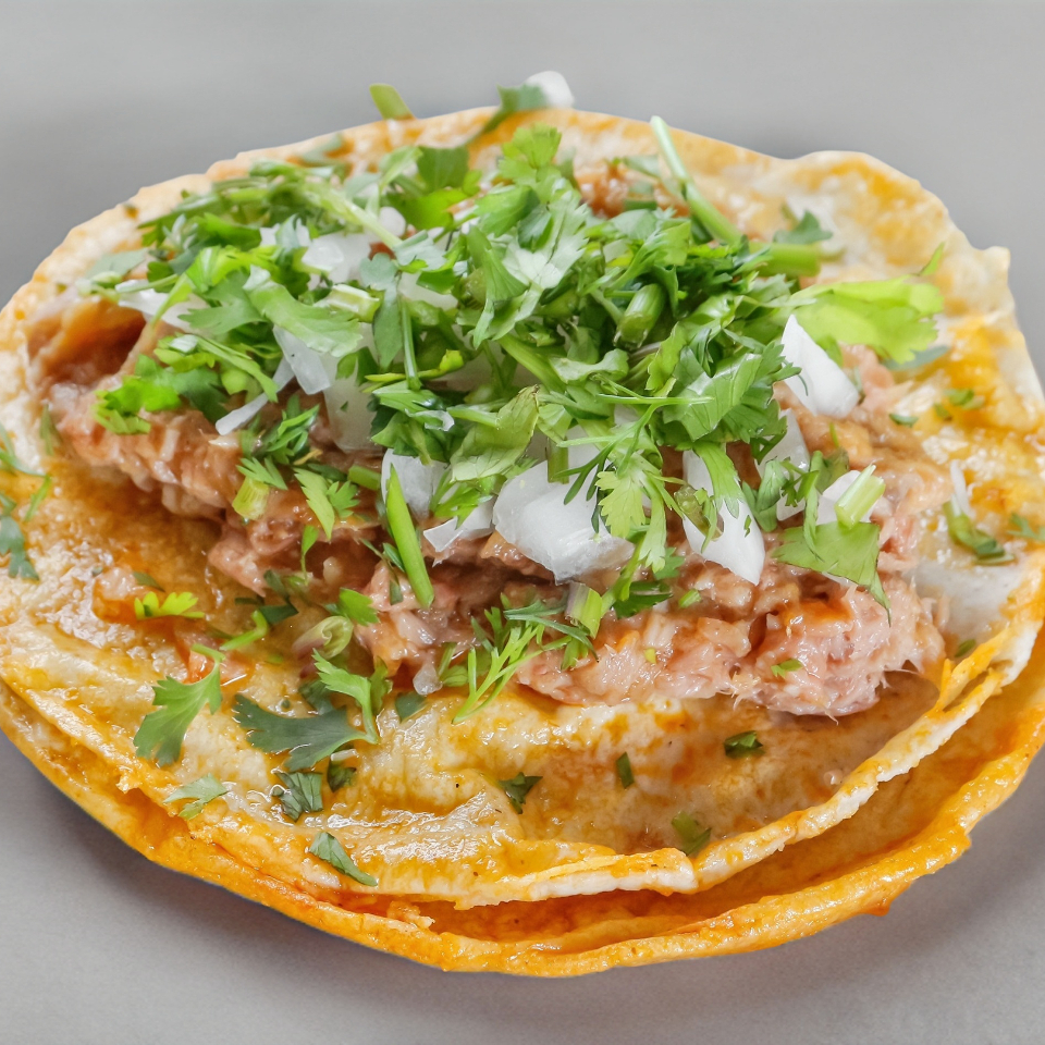 Taco con doble tortilla chica, verdura, limones, salsa verde o roja.