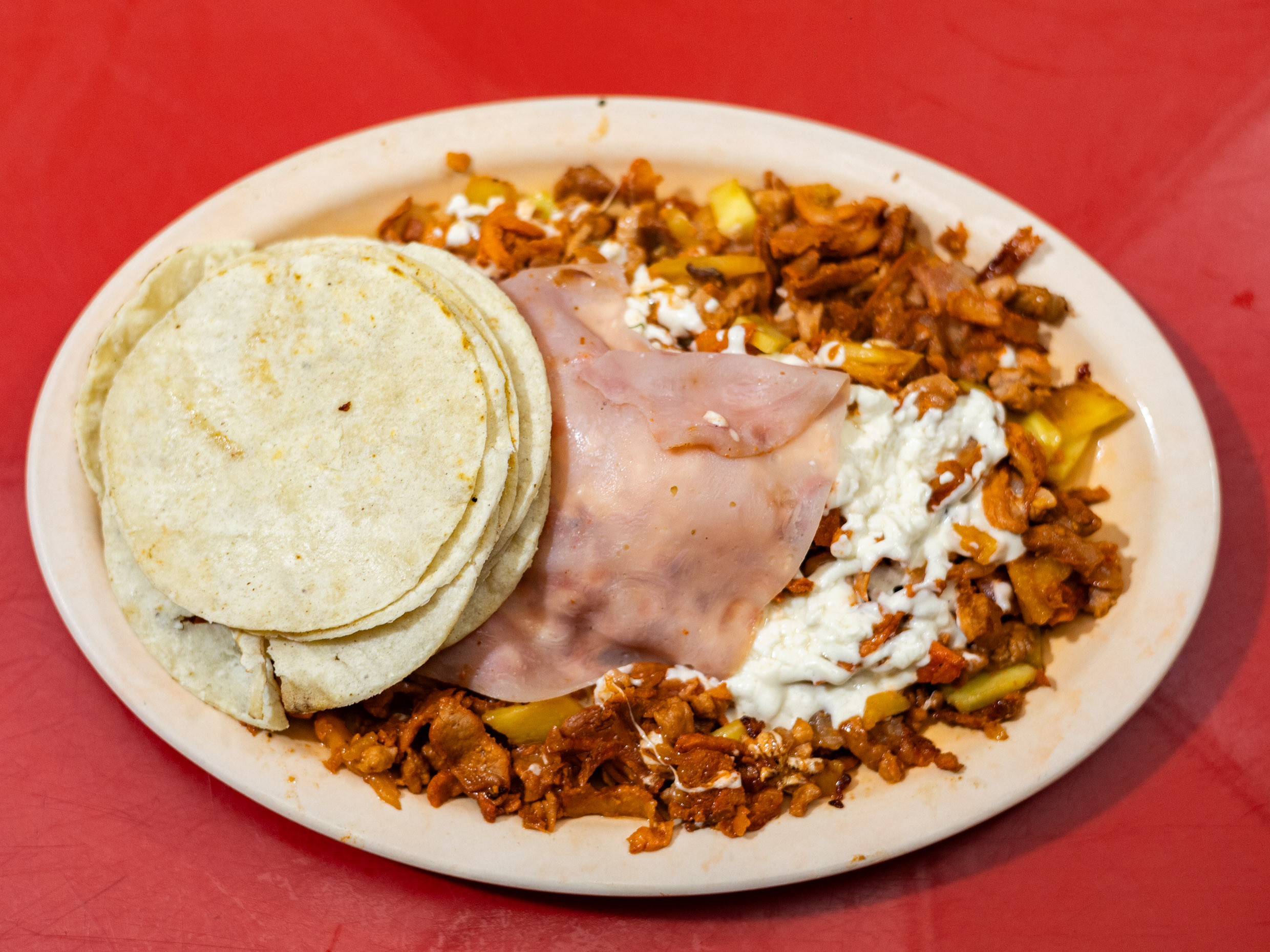 con carne al pastor y queso
