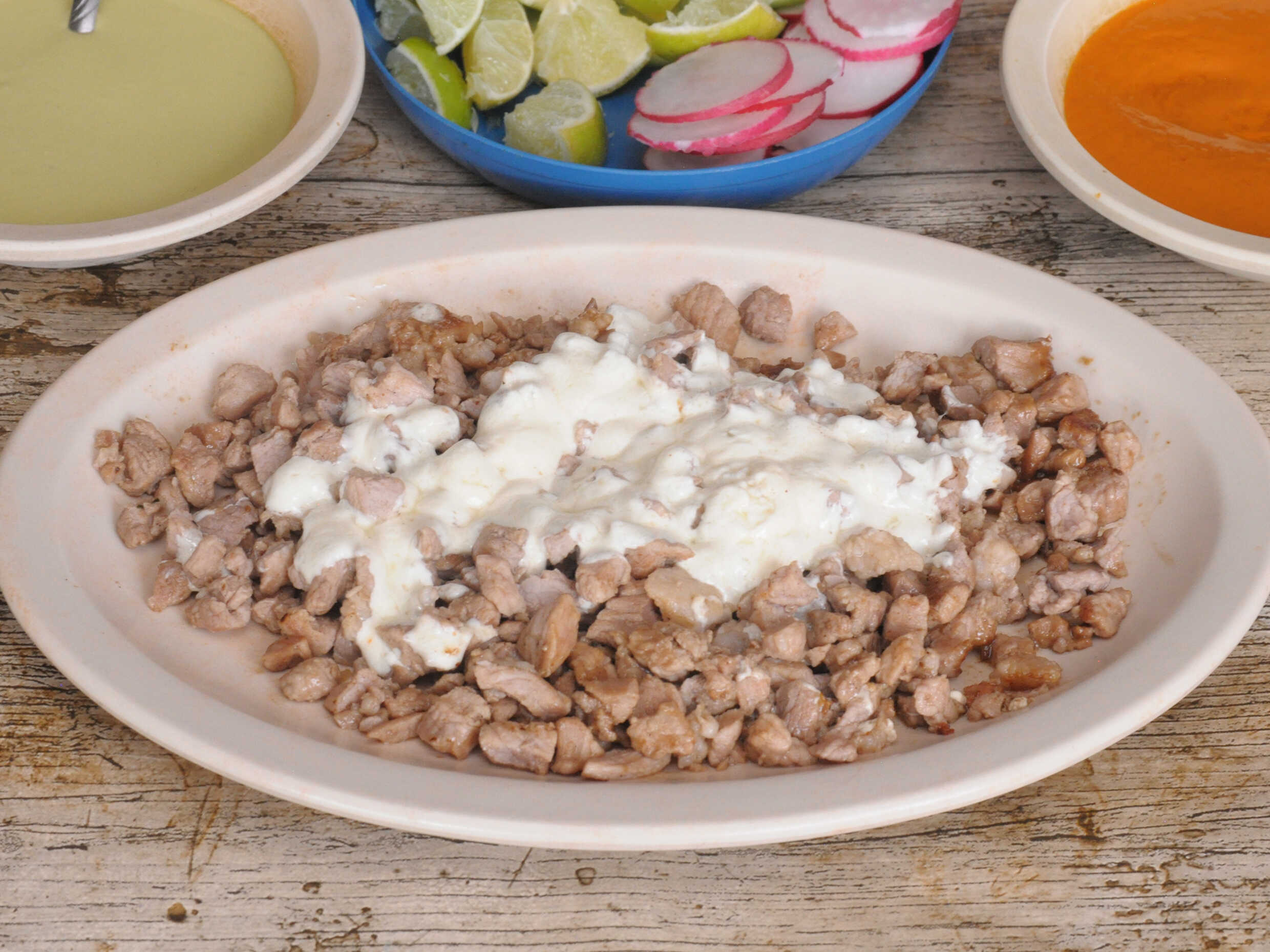 chuleta, pastor, jitomate, queso,