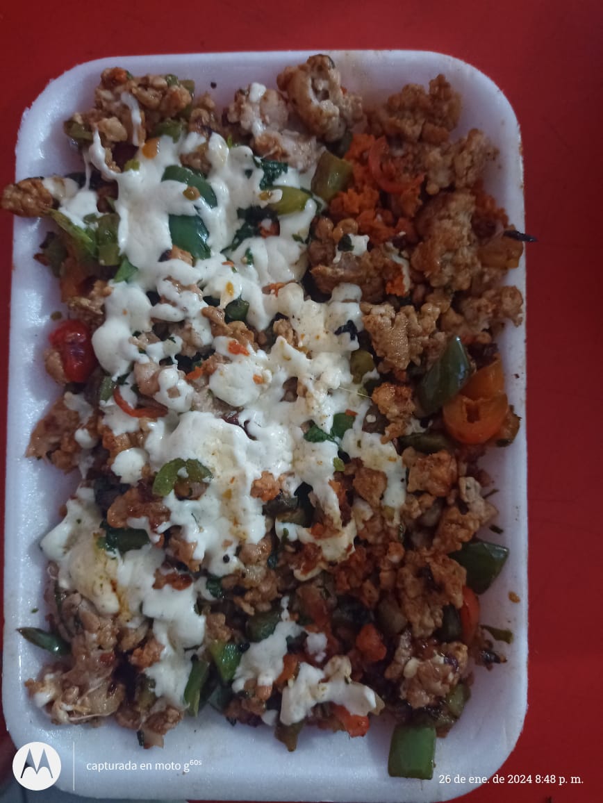 chuleta, pastor, cebolla, morron, jitomate y queso